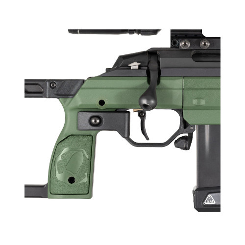 Opěrka pro ukazováček pravé ruky. Umožňuje optimalizovat pozici prstu na spoušti.