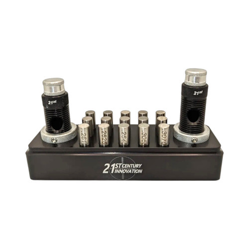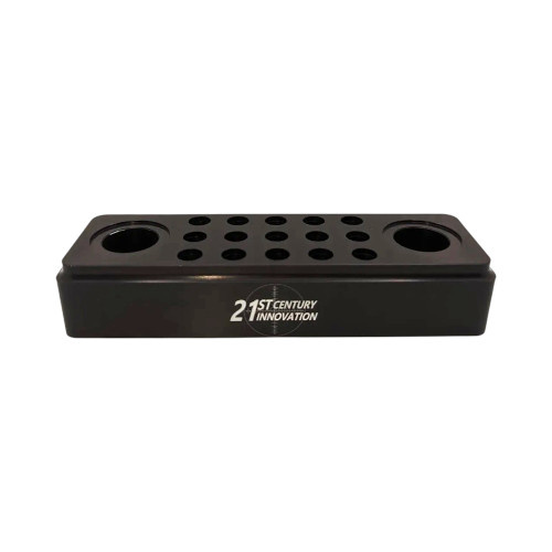 Organizer je vyroben z hliníku 6061 a černě eloxován. Lze do něj uložit 2 matrice expandéru a pojme až 15 rozšiřovacích trnů.