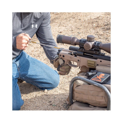 Kompaktní skládací vytěrák z přesně opracovaných nerezových tyček a měnitelných mosazných adaptérů (pro 22 i 30 cal) šetrných k vývrtu. Více informací