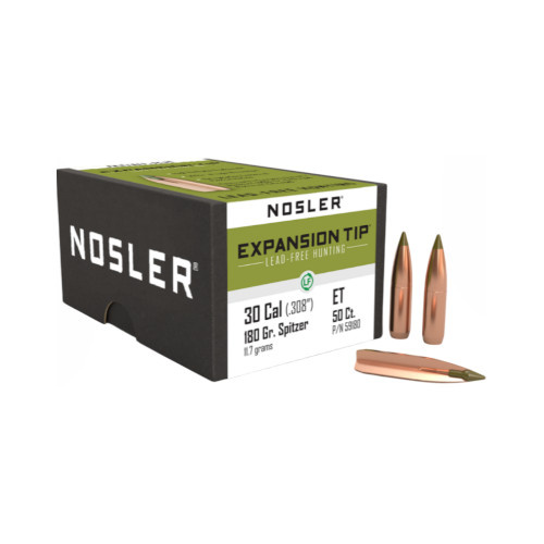 Střela E-Tip™ společnosti Nosler, která splňuje všechny předpisy pro lov bez olova, poskytuje výjimečnou zastavovací sílu a dokonalou průbojnost v širokém spektru dopadových rychlostí, čímž se vyrovná i nejkvalitnějším střelám s olověným jádrem. Exkluzivní dutina E²™ [Energy Expansion Cavity™] společnosti Nosler umožňuje při nárazu okamžitou a rovnoměrnou expanzi, přesto si zachovává 95 % hmotnosti pro lepší průbojnost. Konfigurace střely s lodní zádí v kombinaci se zjednodušenou polymerovou špičkou zajišťuje výkon na dlouhé vzdálenosti a snadné nabíjení, což z ní činí oblíbenou střelu mezi přebíječi střeliva, kteří touží po lovecké střele bez olova.